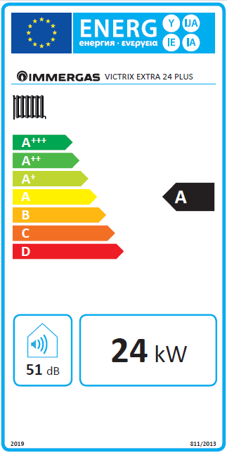 najwyższa klasy efektywności energetycznej A+ dostępna dla kotłów tego typu (przy użyciu regulatora CAR V2 oraz sondy temperatury zewnętrznej).